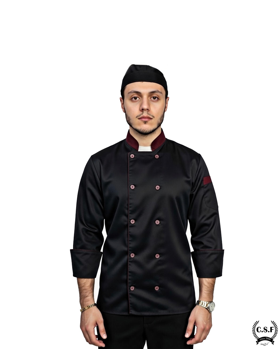 لباس فرم سرآشپز مشکی – یقه قرمز لوکس