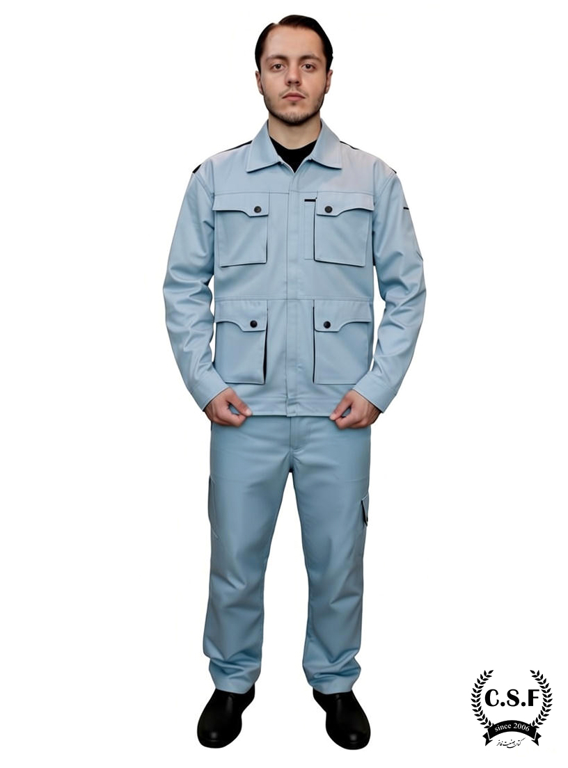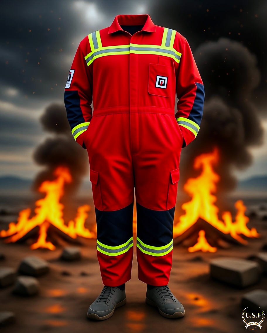 لباس آتش نشانی قرمز با شب رنگ های نقره ای و زرد،مردانه