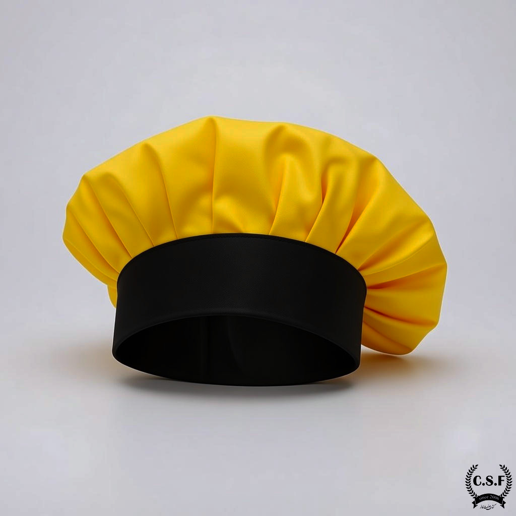 کلاه آشپزی حرفه ای زرد با نوار مشکی
