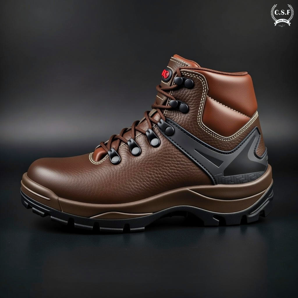 نوع کفش:بوت ایمنی ساق بلند ،رنگ : قهوه ای ، جنس رویه : چرم مصنوعی PU ،جنس زیره : لاستیکی مقاوم و ضد سایش ، سایز : 40،42،44،46،48