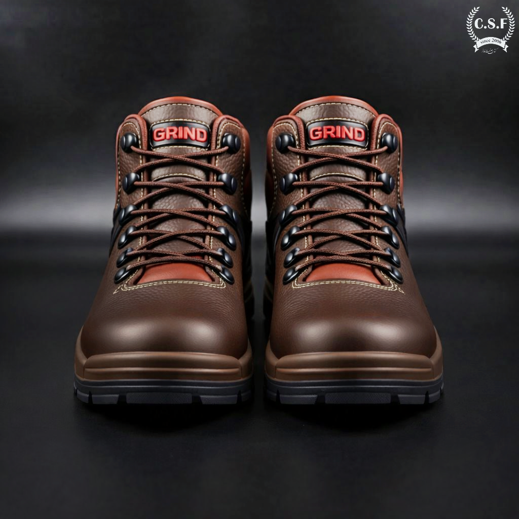 بوت ایمنی ساق بلند قهوه ای ، GRIND